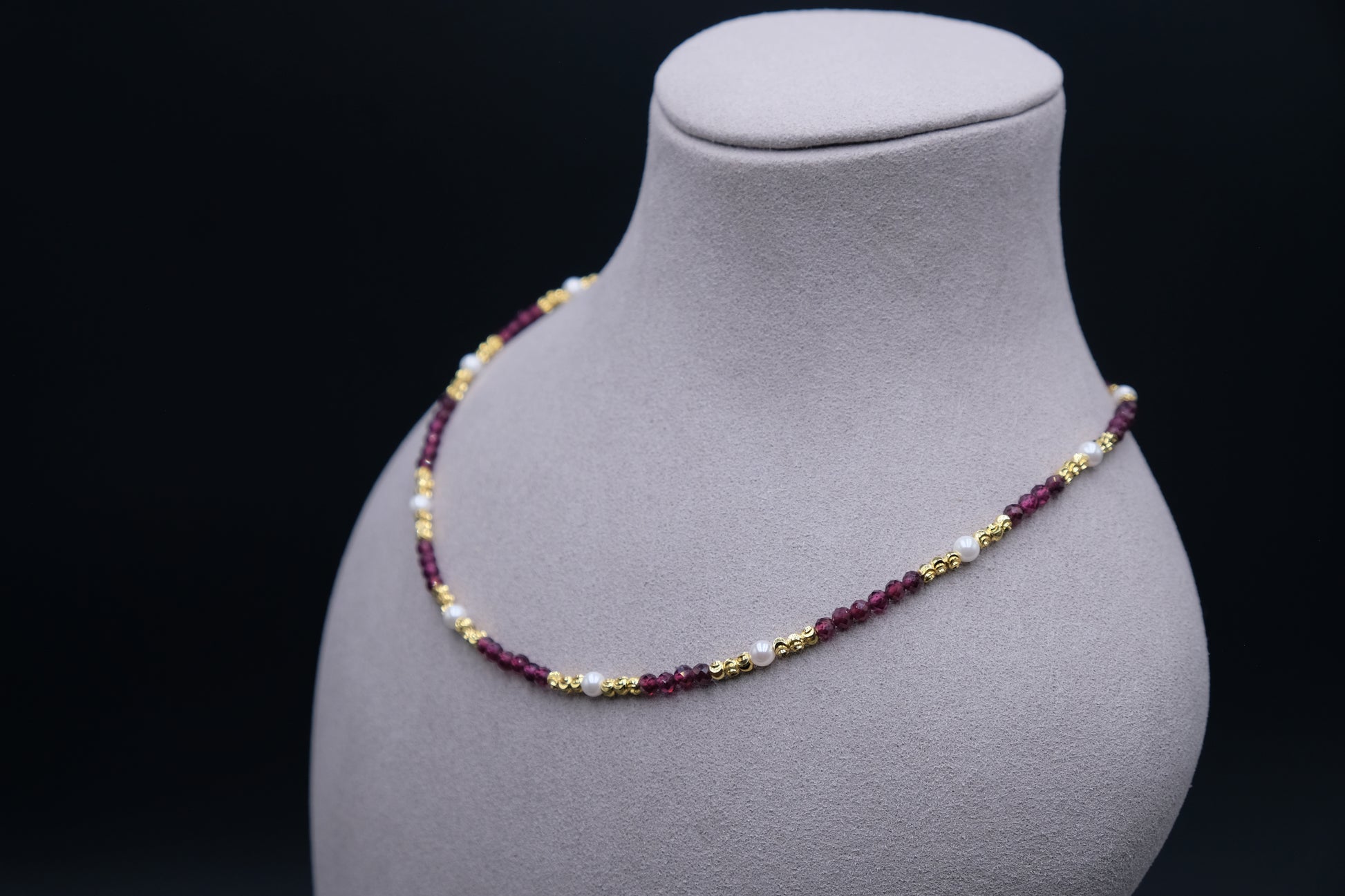 - Natural Rhodolite Garnet beads, approx. 3–4 mm