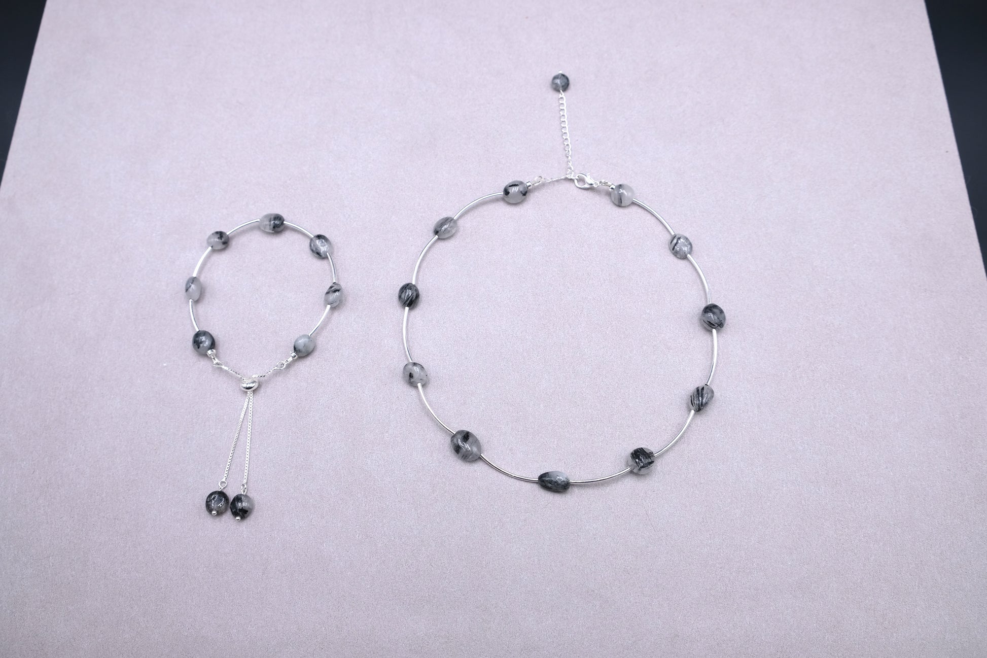 Whispers of the Night | Black Rutilated Quartz Necklace & Bracelet Set